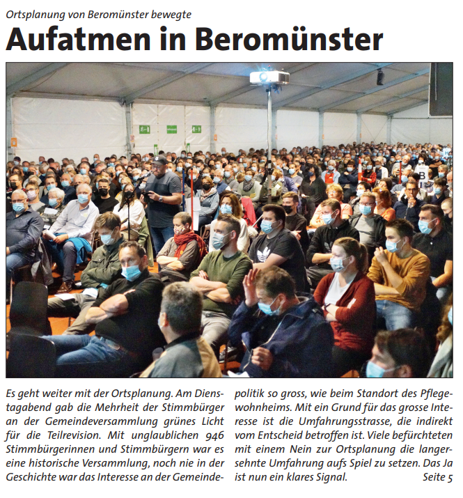 Es geht weiter mit der Ortsplanung. Am Dienstagabend gab die Mehrheit der Stimmbürger an der Gemeindeversammlung grünes Licht für die Teilrevision. Mit unglaublichen 946 Stimmbürgerinnen und Stimmbürgern war es eine historische Versammlung, noch nie in der Geschichte war das Interesse an der Gemeindepolitik so gross, wie beim Standort des Pflegewohnheims.